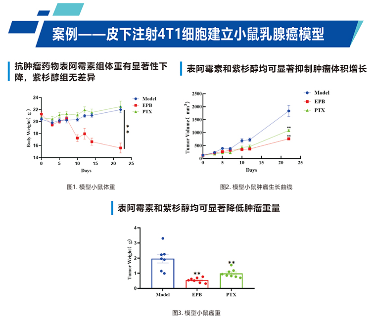 • 皮下注射4T1細胞建立小鼠乳腺癌模型